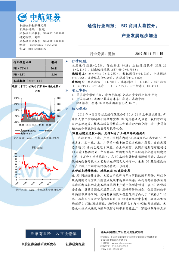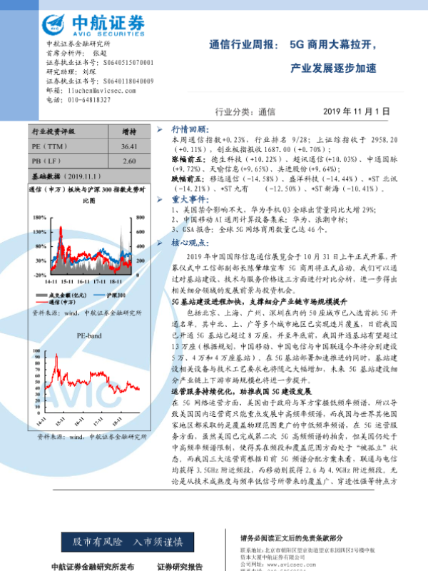 【中航证券】【20191101】通信行业周报:5G商用大幕拉开,产业发展逐步加速-3页