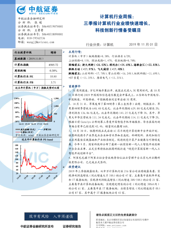 【中航证券】【20191101】20191101-中航证券-计算机行业周报:三季报计算机行业业绩快速增长,科技创新行情备受瞩目-3页