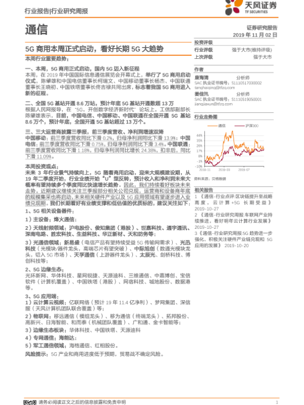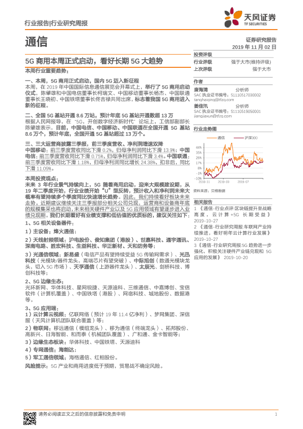 【天风证券】【20191102】通信:5G商用本周正式启动,看好长期5G大趋势-19页