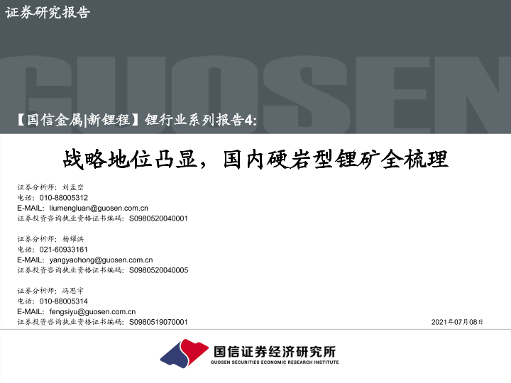 【国信证券】【20210708】锂行业系列报告4:战略地位凸显,国内硬岩型锂矿全梳理-28页