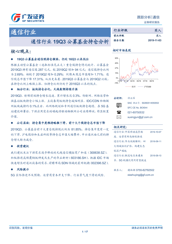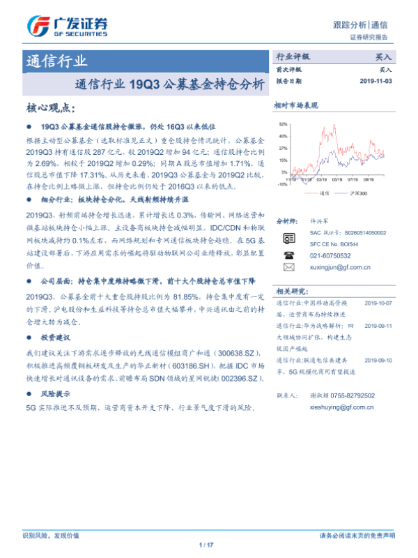 【广发证券】【20191103】通信行业19Q3公募基金持仓分析-17页
