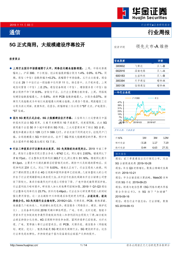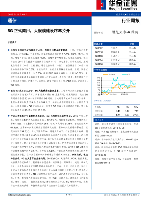 【华金证券】【20191103】通信行业周报:5G正式商用,大规模建设序幕拉开-14页