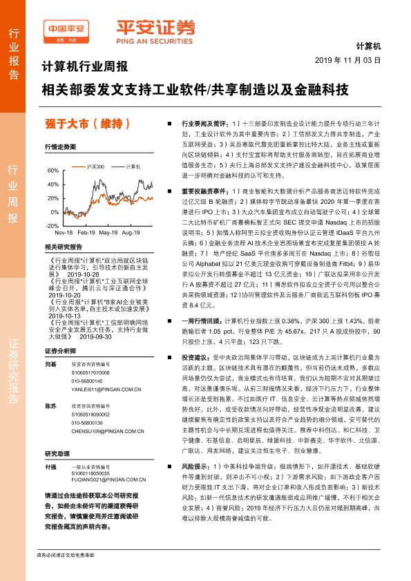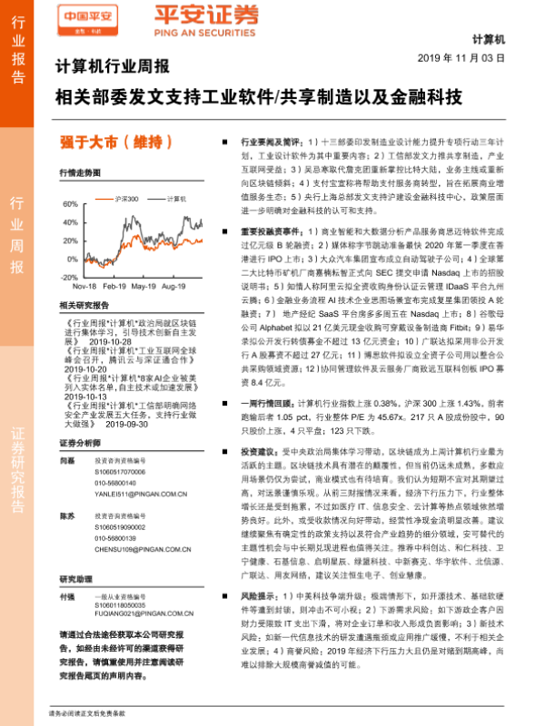【平安证券】【20191103】计算机行业周报:相关部委发文支持工业软件 共享制造以及金融科技-6页