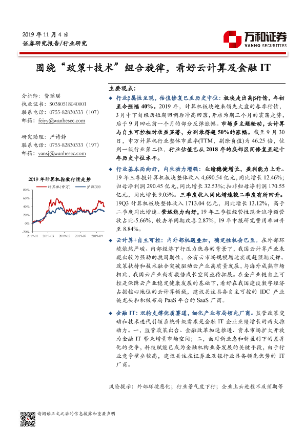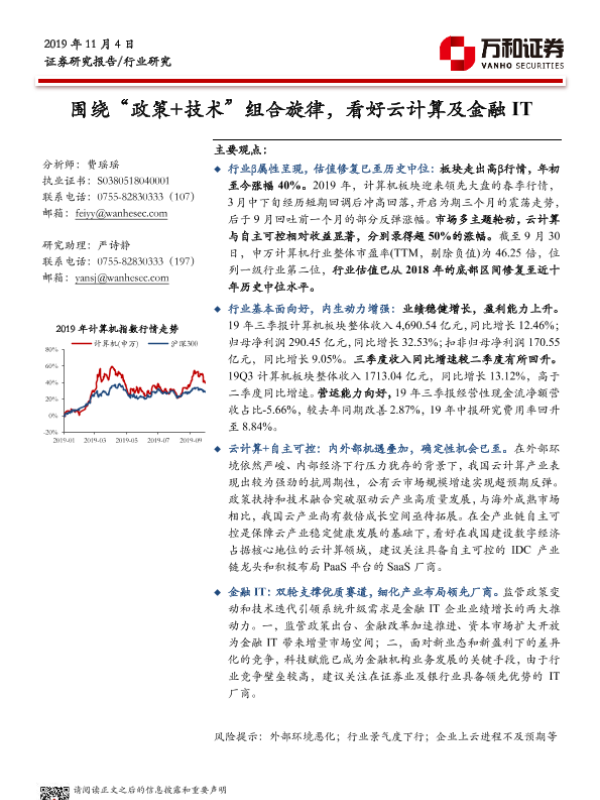 【万和证券】【20191104】围绕“政策+技术”组合旋律,看好云计算及金融IT-20页