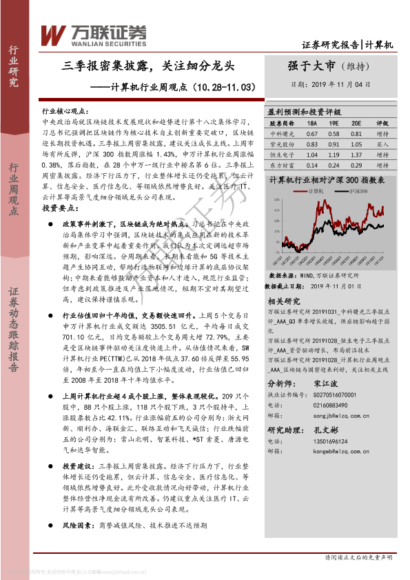 三季报 投资建议 细分龙头 计算机行业 区块链