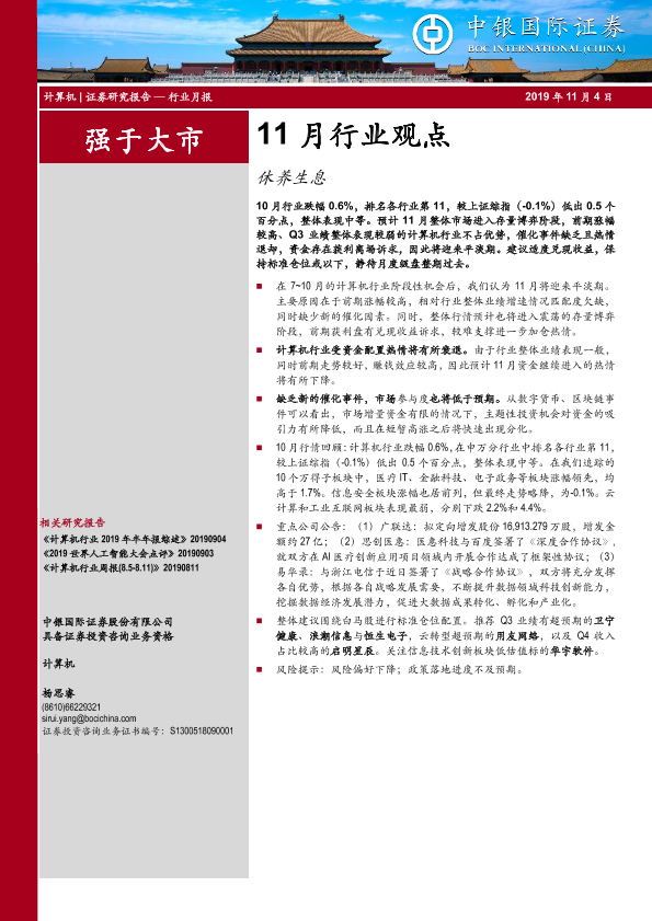 【中银证券】【20191104】计算机11月行业观点:休养生息-11页