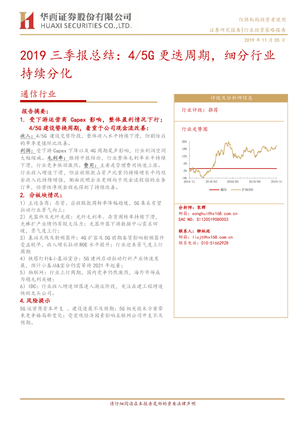 【华西证券】【20191105】通信行业2019三季报总结:4/5G更迭周期,细分行业持续分化-16页