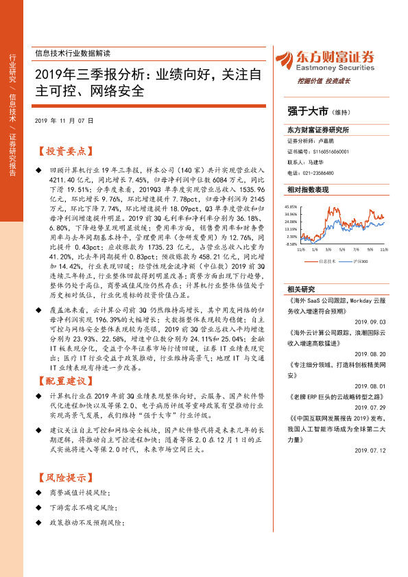【东方财富证券】【20191107】2019年三季报分析:业绩向好,关注自主可控、网络安全-12页
