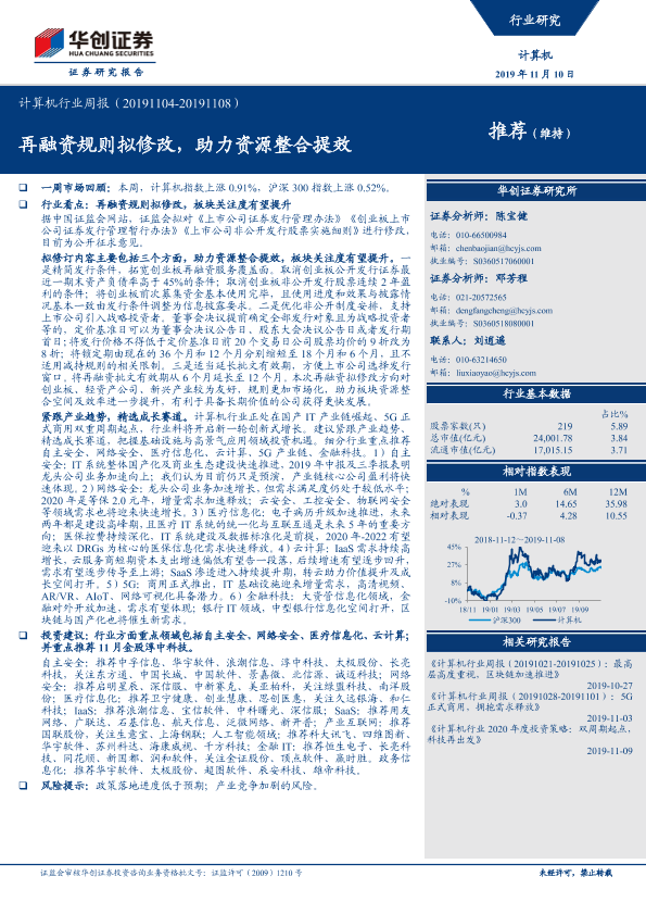 【华创证券】【20191110】20191110-华创证券-计算机行业周报:再融资规则拟修改,助力资源整合提效-23页