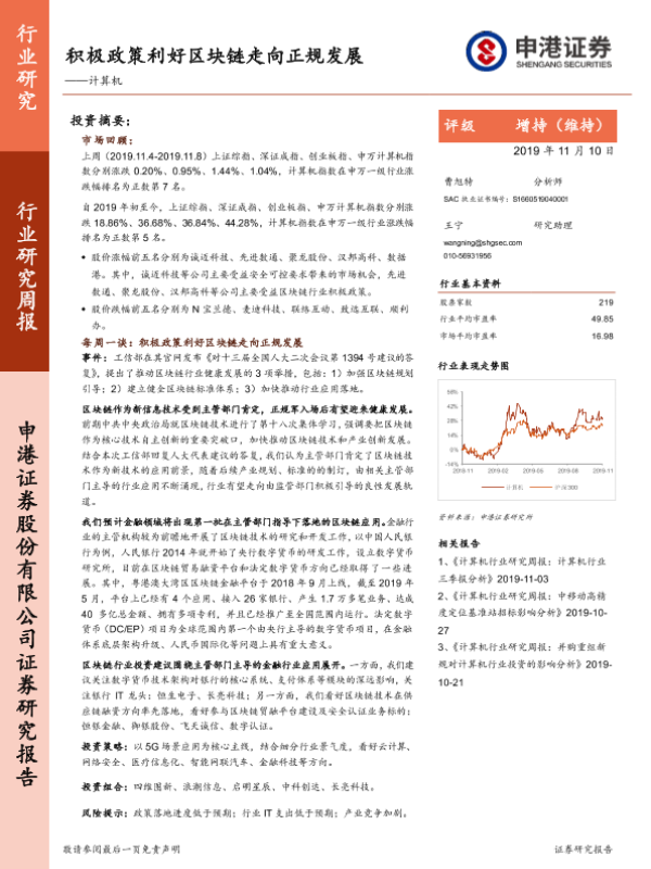 【申港证券】【20191110】20191110-申港证券-计算机行业研究周报:积极政策利好区块链走向正规发展-9页