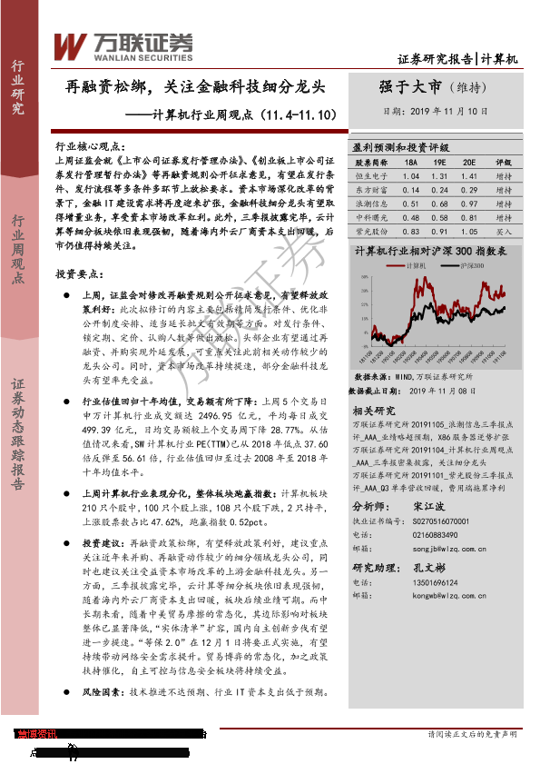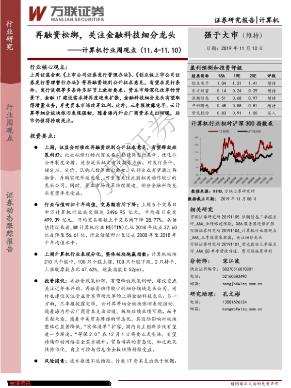 【万联证券】【20191110】20191110-万联证券-计算机行业周观点:再融资松绑,关注金融科技细分龙头-10页