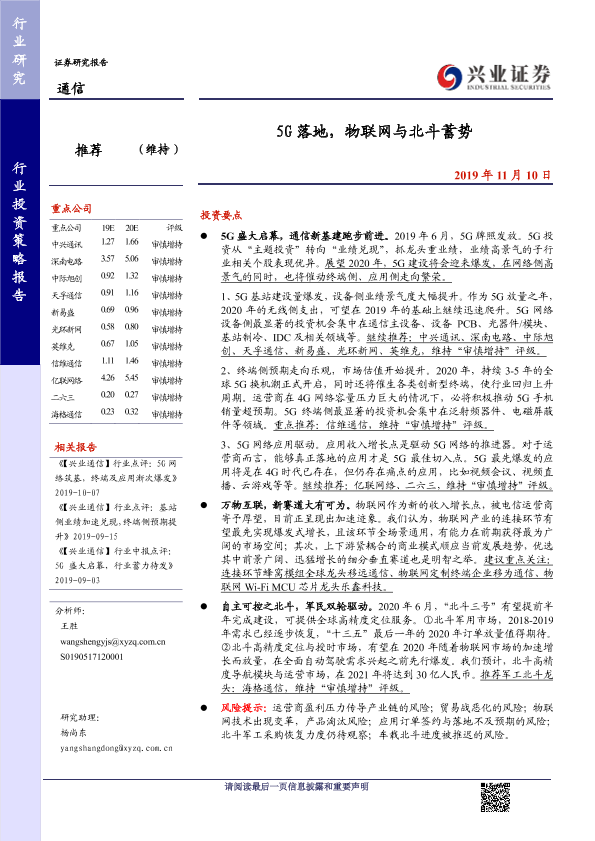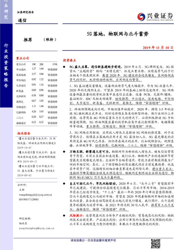 【兴业证券】【20191110】5G落地,物联网与北斗蓄势-27页