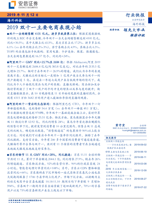 【安信证券】【20191112】2019双十一主要电商表现小结-6页