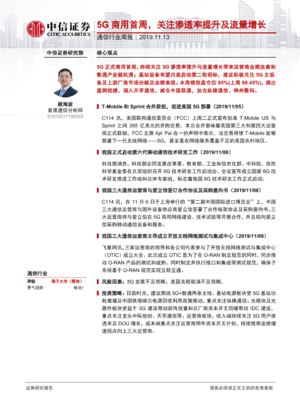 5G商用 市场表现 技术发展 投资策略 通信行业