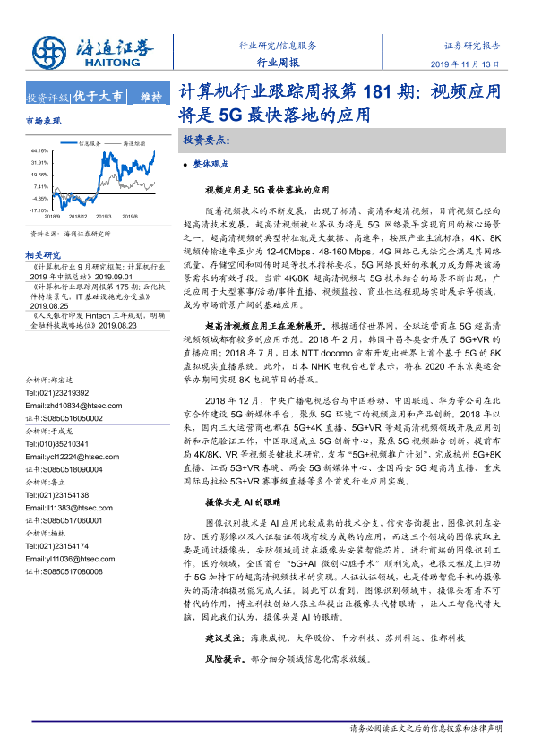【海通证券】【20191113】计算机行业跟踪周报第181期:视频应用将是5G最快落地的应用-5页