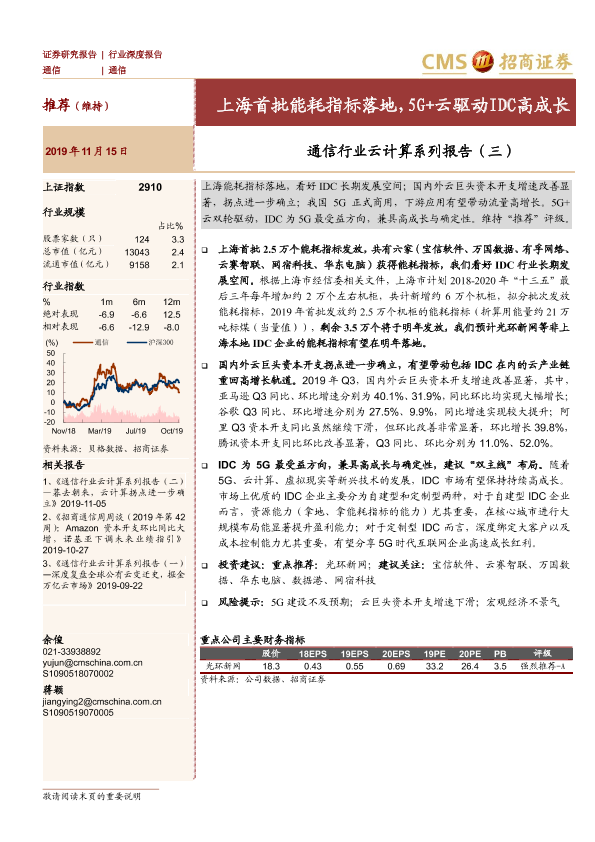 【海通证券】【20191115】通信行业云计算系列报告(三):上海首批能耗指标落地,5G+云驱动IDC高成长-20页
