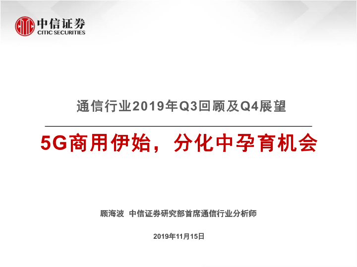 【中信证券】【20191115】通信行业2019年Q3回顾及Q4展望:5G商用伊始,分化中孕育机会-31页
