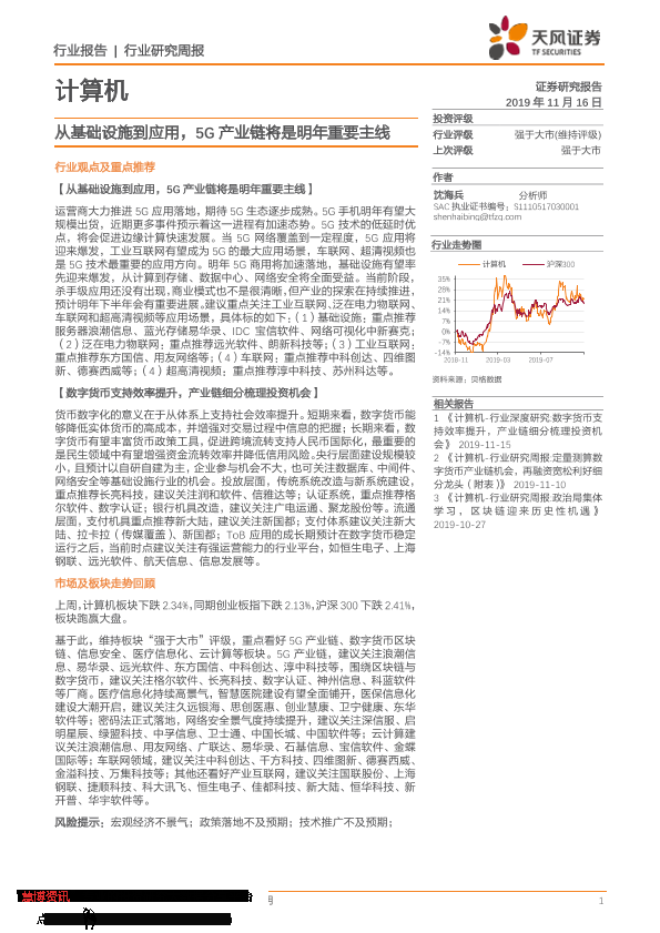 【天风证券】【20191116】20191116-天风证券-计算机行业研究周报:从基础设施到应用,5G产业链将是明年重要主线-9页