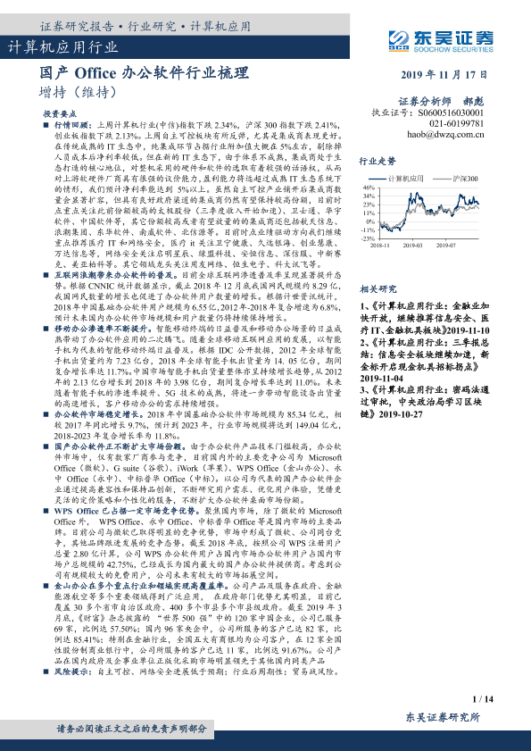【东吴证券】【20191117】计算机应用行业:国产Office办公软件行业梳理-14页