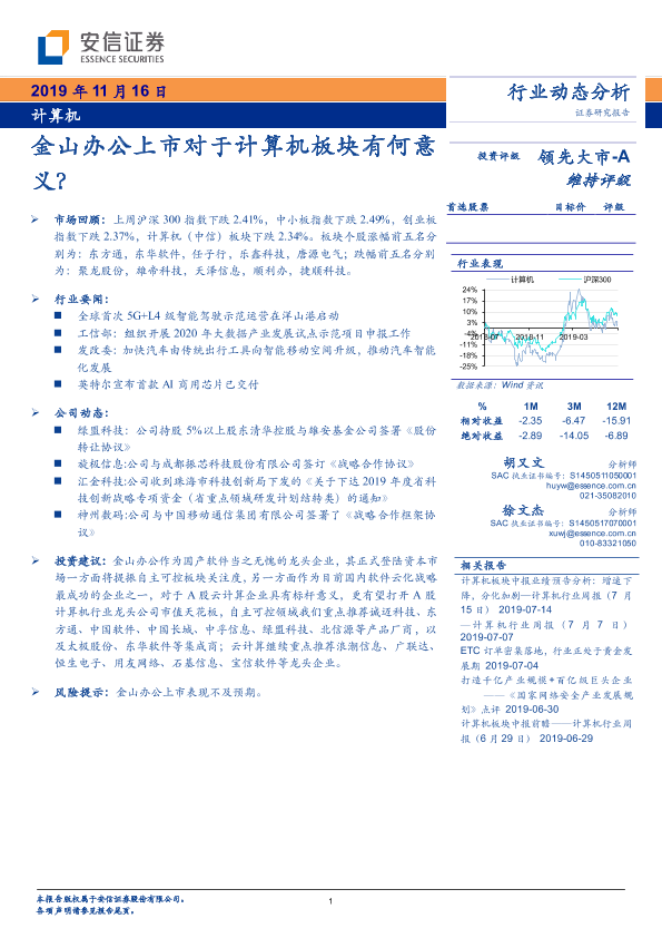 【安信证券】【20191116】20191116-安信证券-计算机行业动态分析:金山办公上市对于计算机板块有何意义?-16页