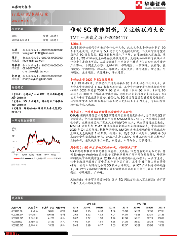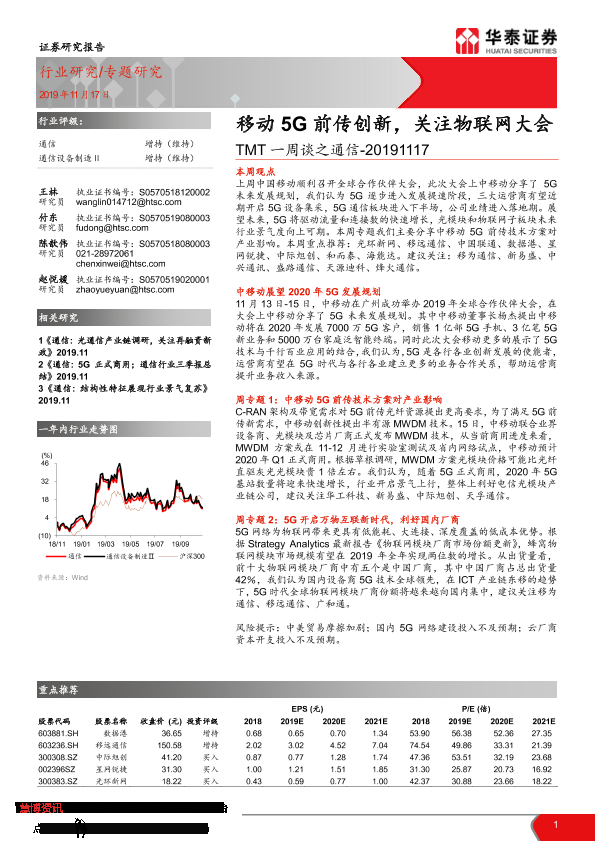 【华泰证券】【20191117】TMT一周谈之通信:移动5G前传创新,关注物联网大会-16页