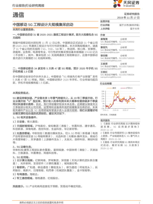 【天风证券】【20191117】20191117-天风证券-通信行业研究周报:中国移动5G工程设计大规模集采启动-19页