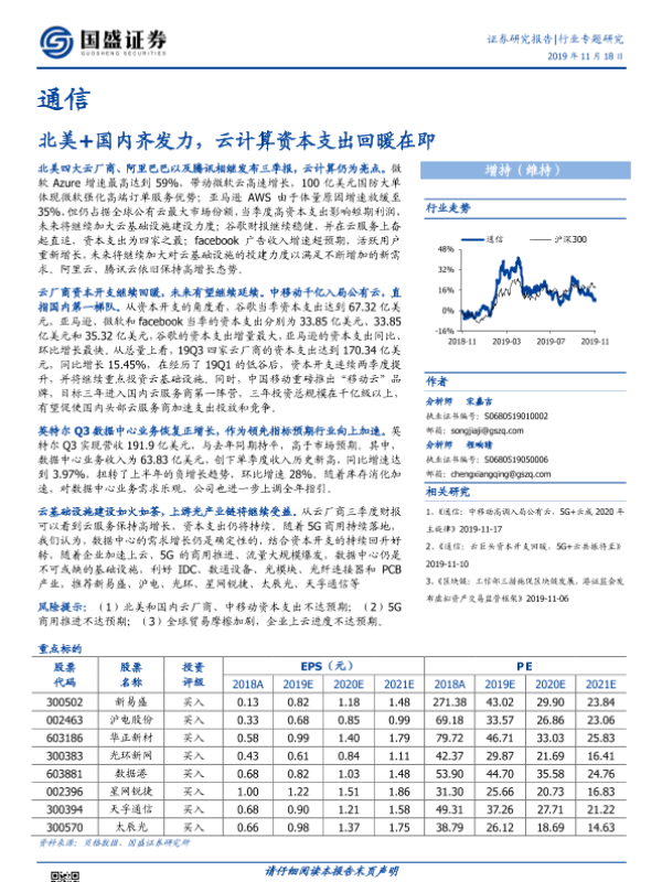 【国盛证券】【20191118】通信行业专题研究:北美+国内齐发力,云计算资本支出回暖在即-11页