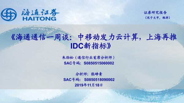 【海通证券】【20191118】海通通信一周谈:中移动发力云计算,上海再推IDC新指标-10页
