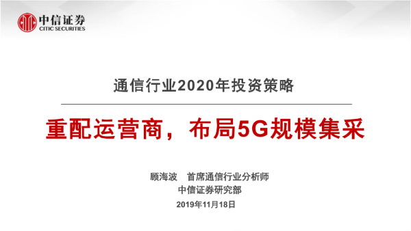 【中信证券】【20191118】通信行业2020年投资策略:重配运营商,布局5G规模集采-25页