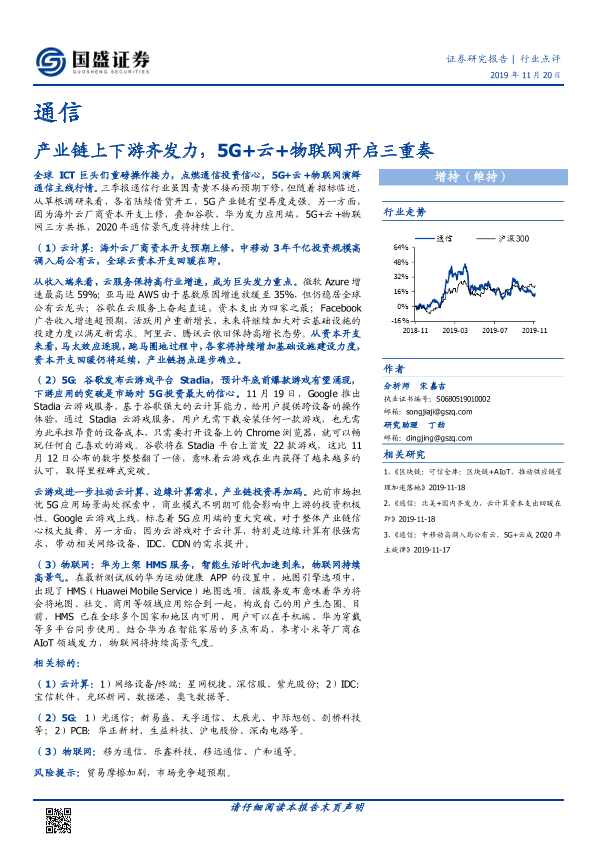 【国盛证券】【20191120】通信行业点评:产业链上下游齐发力,5G+云+物联网开启三重奏-3页
