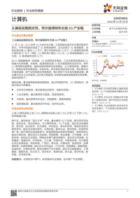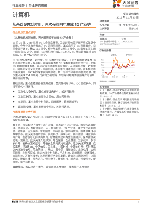 【天风证券】【20191123】计算机行业研究周报:从基础设施到应用,再次强调明年主线5G产业链-10页