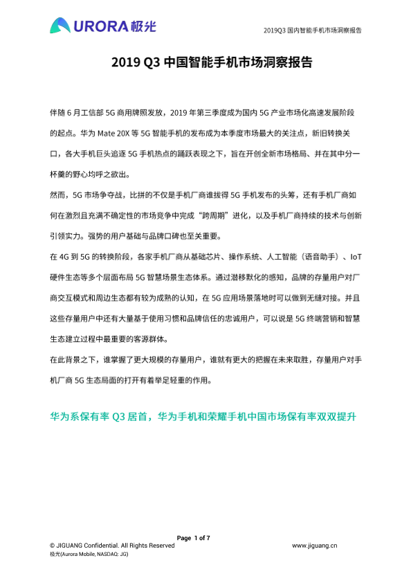 【极光(Aurora Mobile)】【20191123】2019Q3中国智能手机市场洞察报告-7页