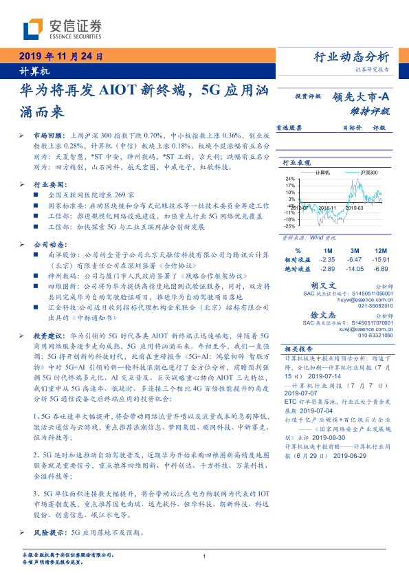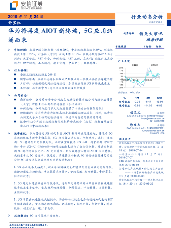 【安信证券】【20191124】计算机行业动态分析:华为将再发AIOT新终端,5G应用汹涌而来-18页