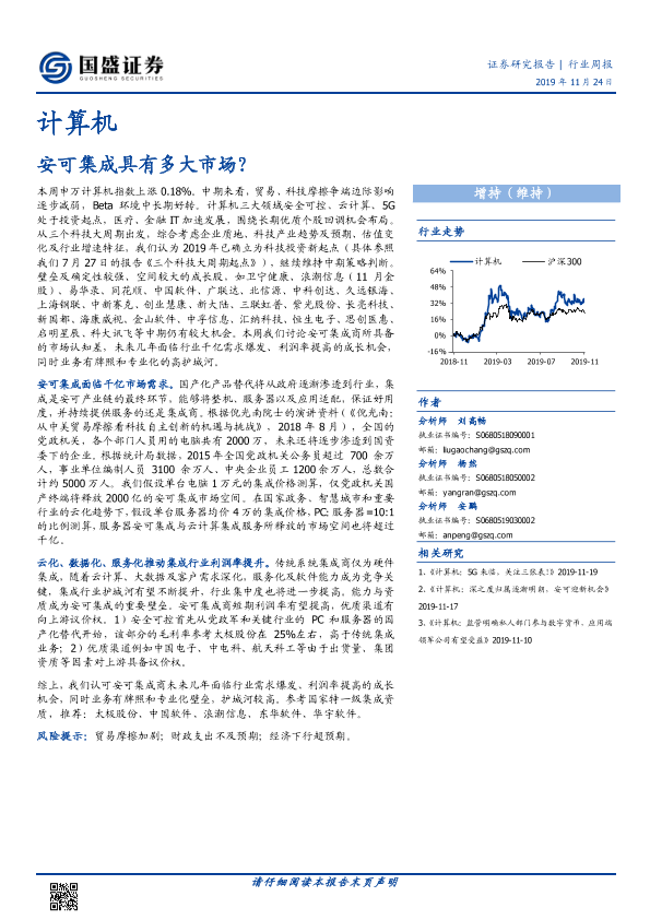 【国盛证券】【20191124】计算机行业周报:安可集成具有多大市场?-8页