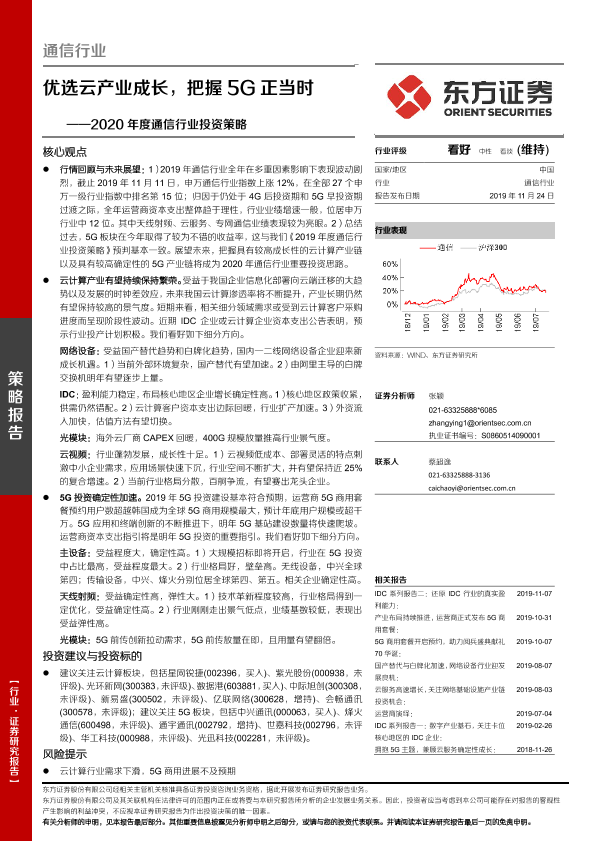 【东方证券】【20191124】2020年度通信行业投资策略:优选云产业成长,把握5G正当时-47页