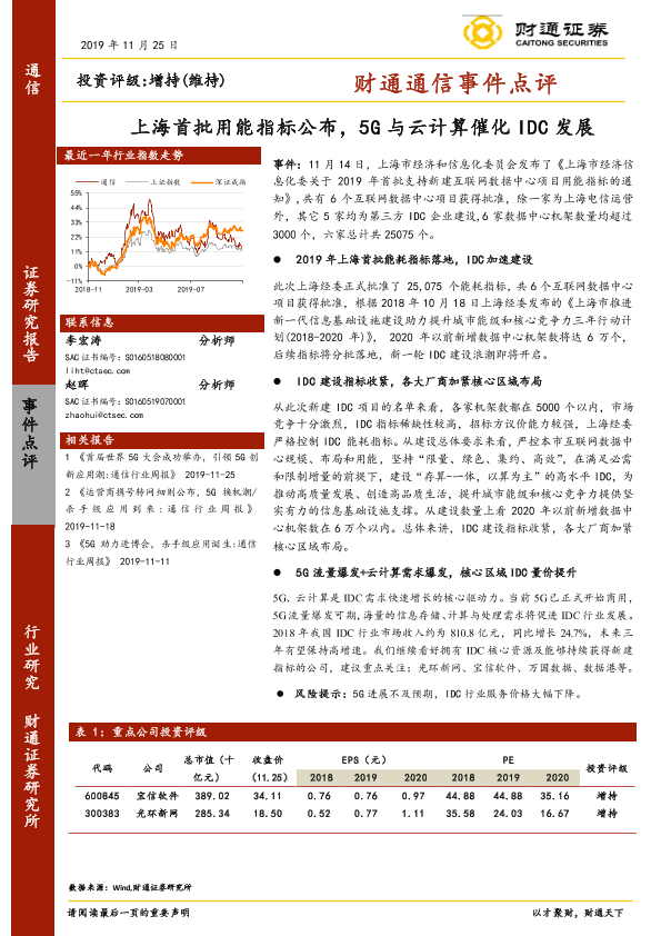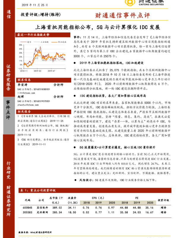 【财通证券】【20191125】财通通信事件点评:上海首批用能指标公布,5G与云计算催化IDC发展-2页