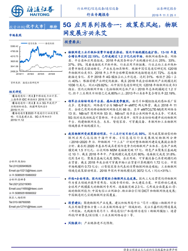 【海通证券】【20191125】5G应用系列报告一:政策东风起,物联网发展方兴未艾-27页