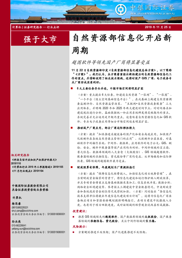 【中银证券】【20191125】计算机:自然资源部信息化开启新周期:超图软件等领先国产厂商将显著受益-4页