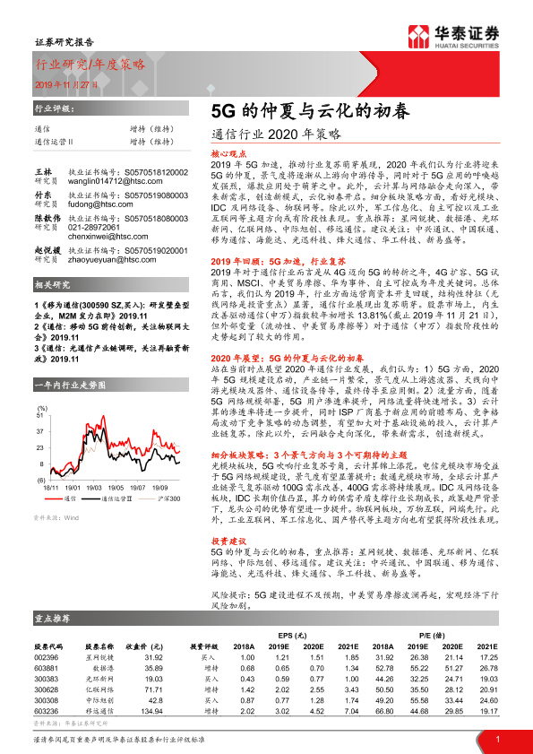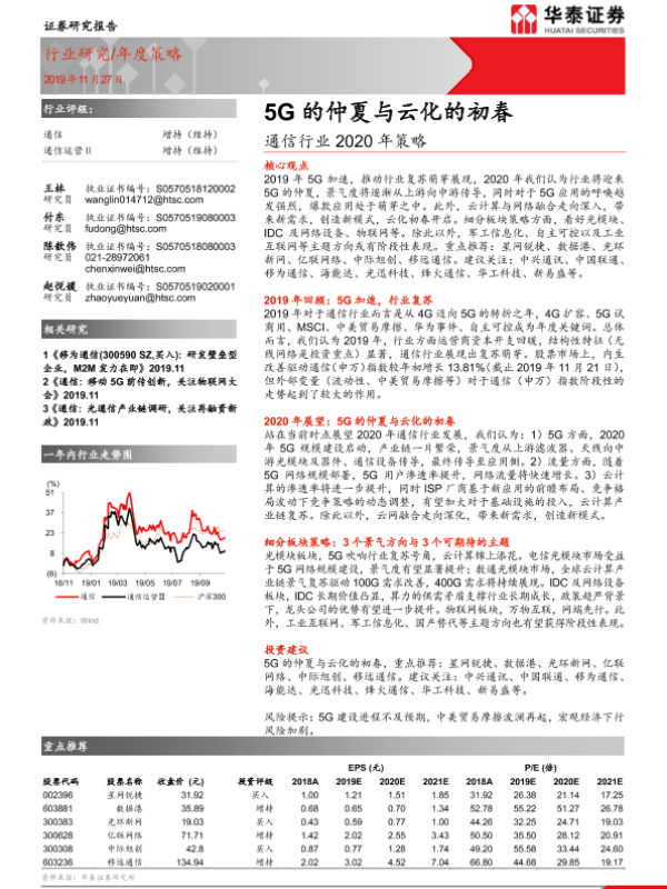 【华泰证券】【20191127】通信行业2020年策略:5G的仲夏与云化的初春-46页
