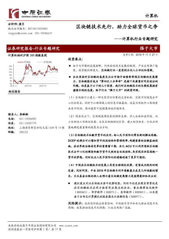 【中原证券】【20191127】计算机行业专题研究:区块链技术先行,助力全球货币之争-37页