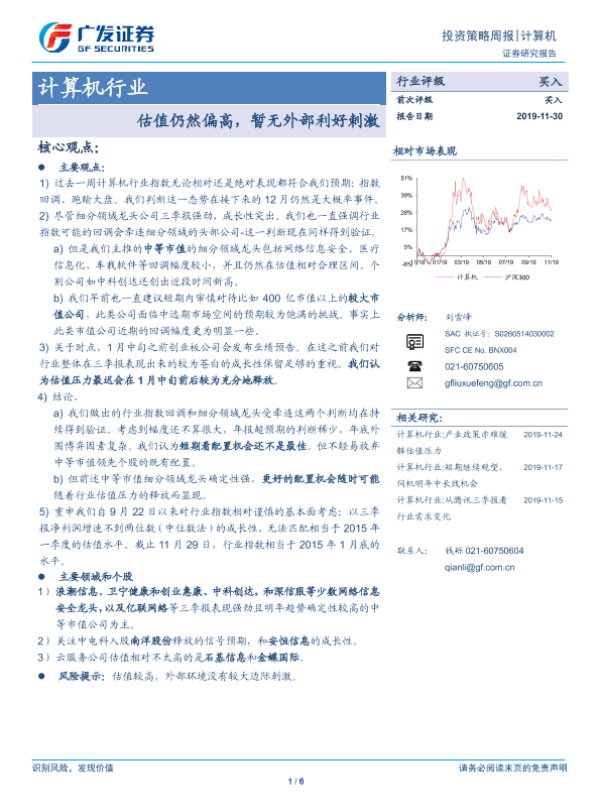 【广发证券】【20191130】20191130-广发证券-计算机行业投资策略周报:估值仍然偏高,暂无外部利好刺激-6页
