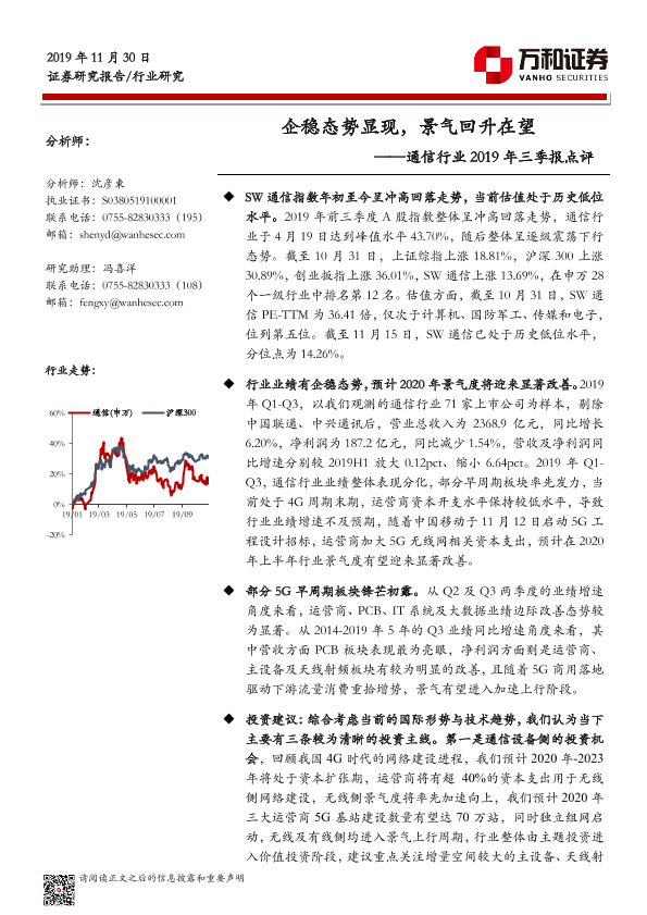 【万和证券】【20191130】通信行业2019年三季报点评:企稳态势显现,景气回升在望-21页