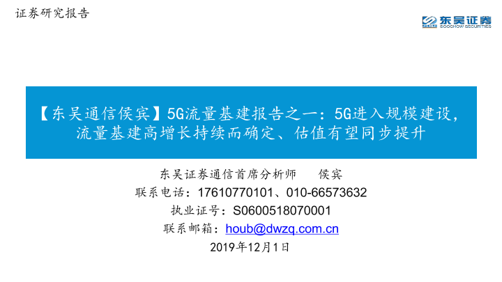 【东吴证券】【20191201】5G流量基建报告之一:5G进入规模建设,流量基建高增长持续而确定、估值有望同步提升-32页
