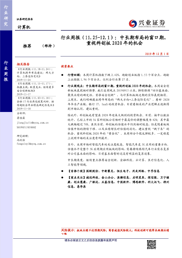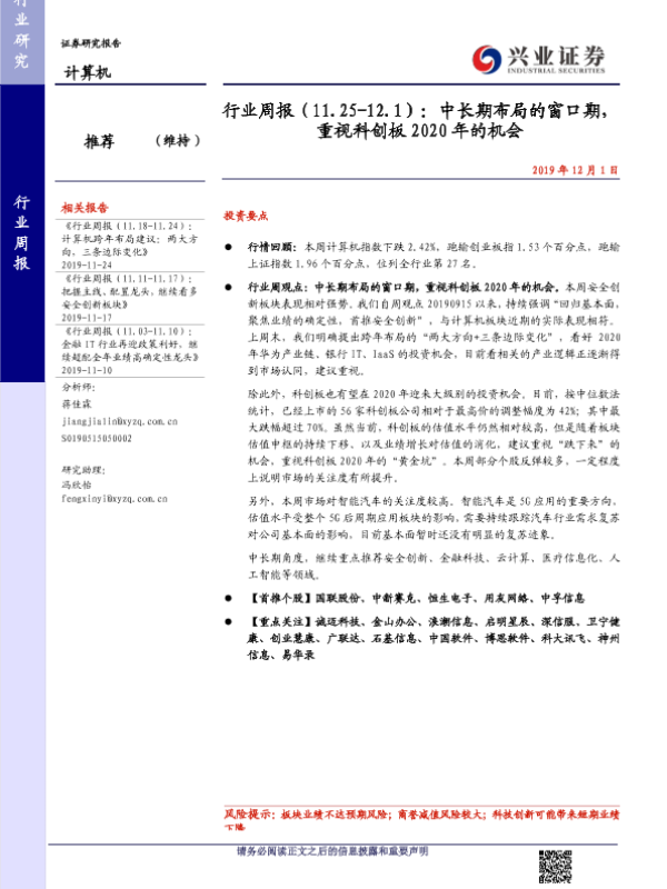 【兴业证券】【20191201】行业周报(11.25-12.1):中长期布局的窗口期,重视科创板2020年的机会-18页