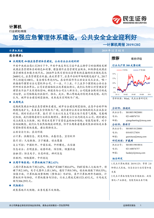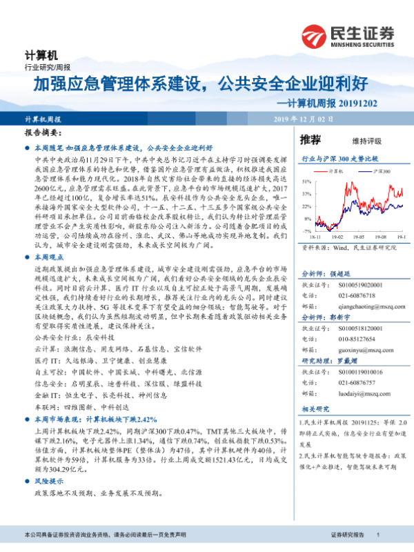 【民生证券】【20191202】20191202-民生证券-计算机周报:加强应急管理体系建设,公共安全企业迎利好-12页