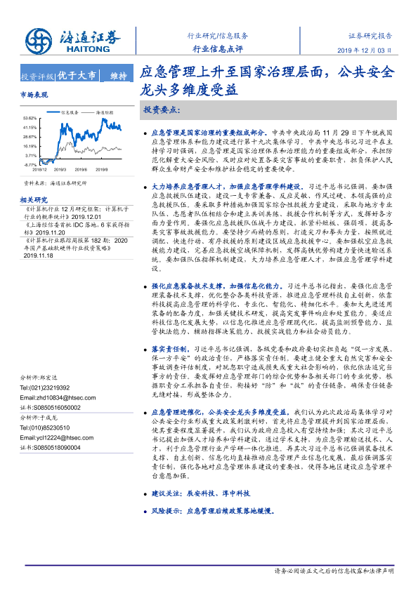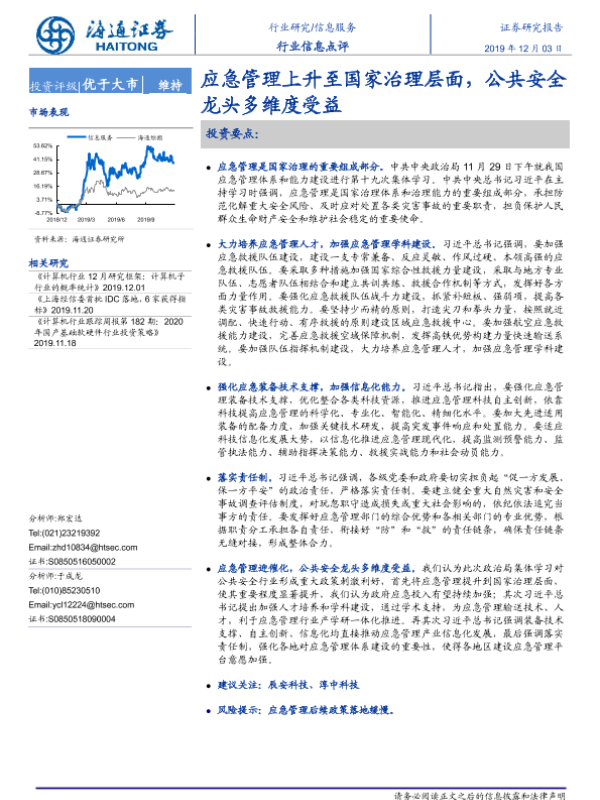 【海通证券】【20191203】信息服务行业信息点评:应急管理上升至国家治理层面,公共安全龙头多维度受益-2页
