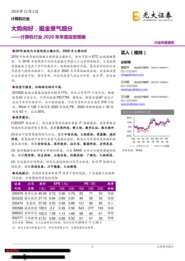 【光大证券】【20191202】计算机行业2020年年度投资策略:大势向好,掘金景气细分-54页