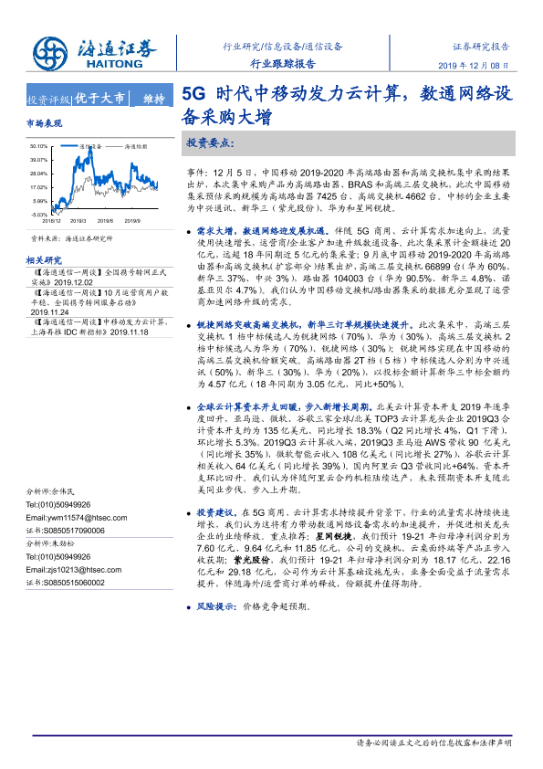 【海通证券】【20191208】通信设备行业跟踪报告:5G时代中移动发力云计算,数通网络设备采购大增-3页