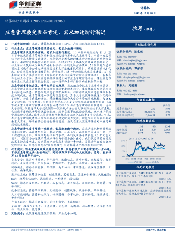 【华创证券】【20191208】计算机行业周报:应急管理屡受顶层肯定,需求加速渐行渐近-23页