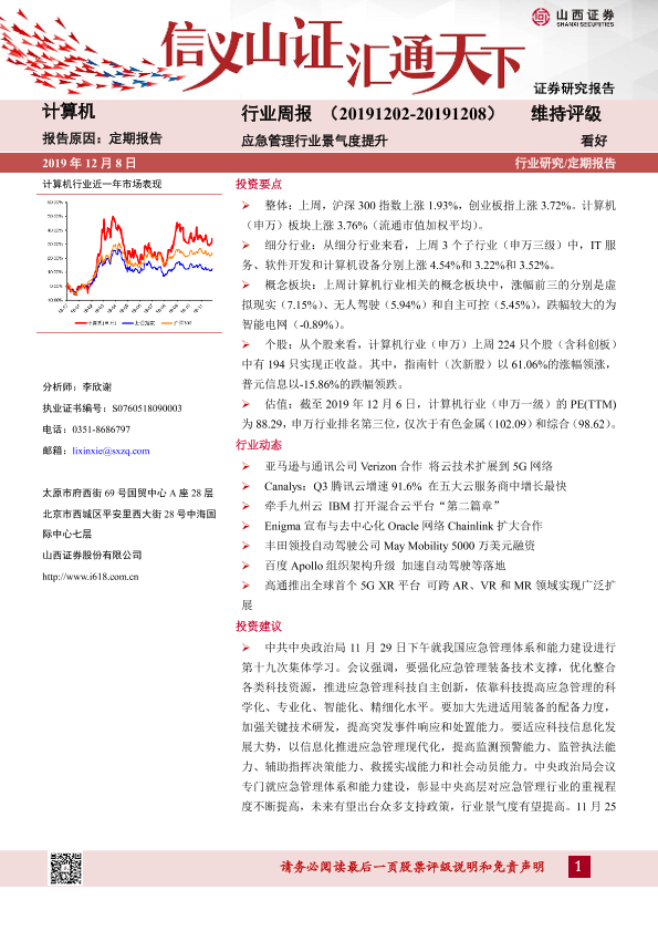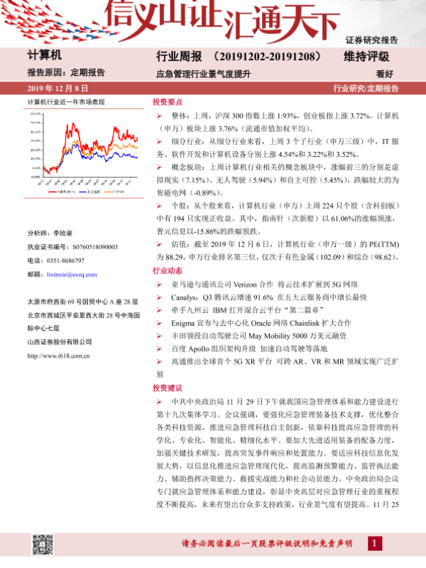 【山西证券】【20191208】20191208-山西证券-计算机行业周报:应急管理行业景气度提升-10页